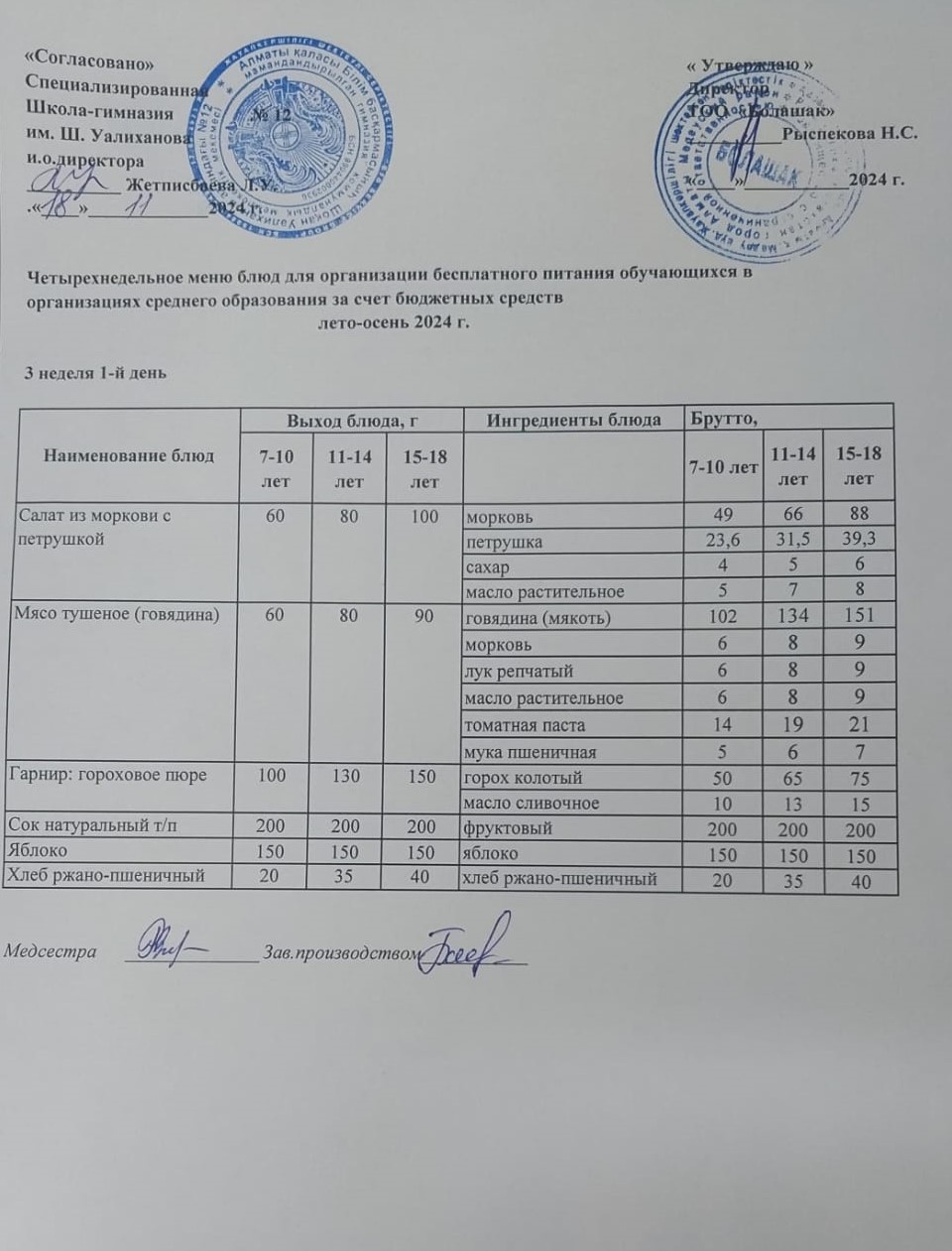 18 қараша 2024 0 1 2 3 4 5 1-4 және СУСН 5-11 сынып оқушыларына арналған ыстық тамақ ас мәзірі Осы беттің QR-коды:QR-код этой страницы: