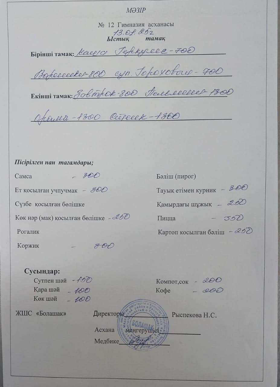 13 қаңтар 2025 0 1 2 3 4 5 1-4 және СУСН 5-11 сынып оқушыларына арналған бір мезгілдік ыстық тамақ ас мәзірі Осы беттің QR-коды:QR-код этой страницы: