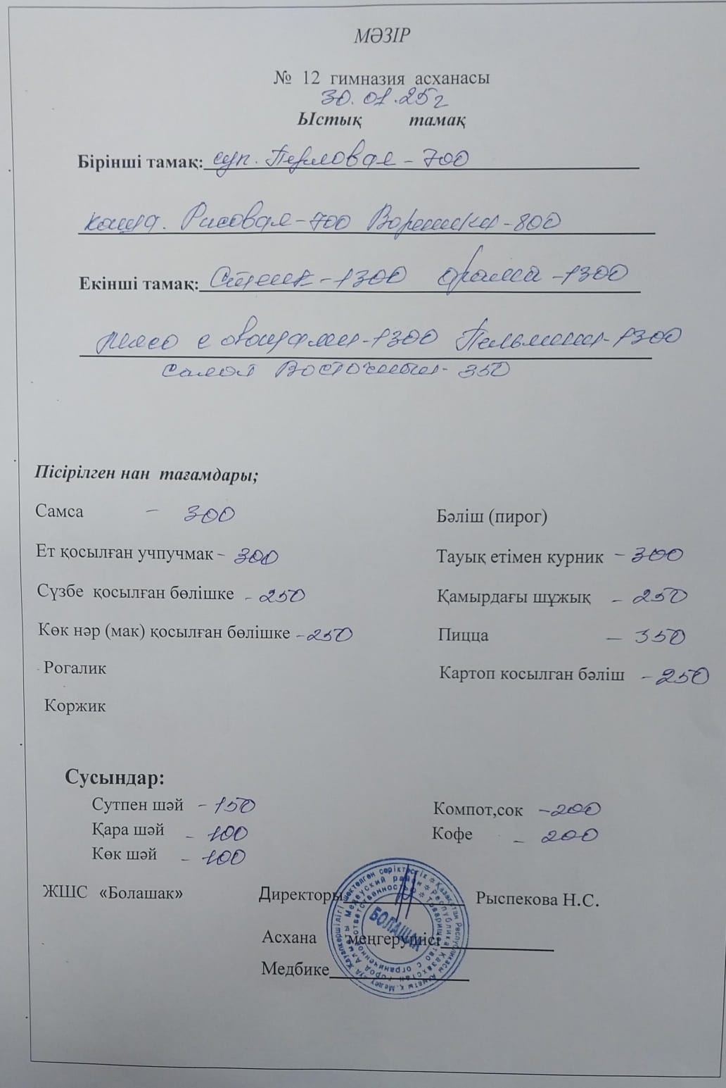 30 қаңтар 2025 0 1 2 3 4 5 1-4 және СУСН 5-11 сынып оқушыларына арналған ыстық тамақ мәзірі Осы беттің QR-коды:QR-код этой страницы: