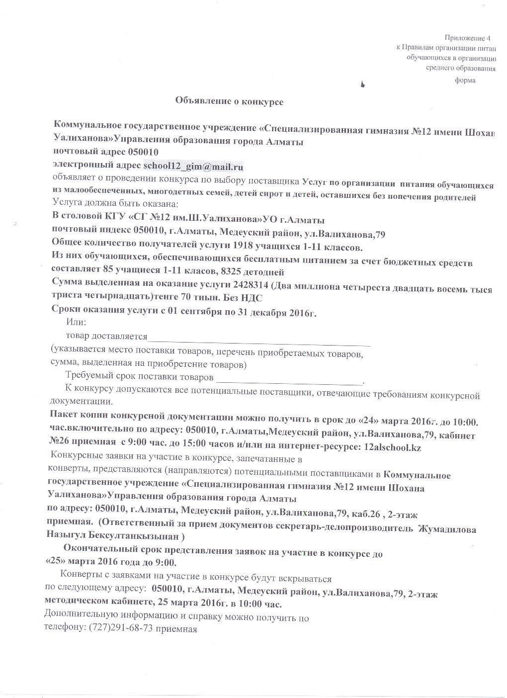 «Ш.Уәлиханов атындағы №12 мамандандырылған гимназия»
