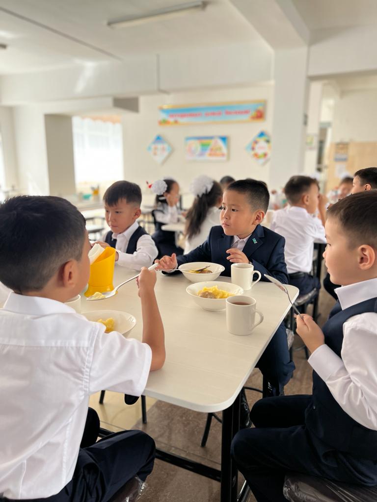 2022 жылдың 1 қыркүйегінен мемлекеттік мектептерде 1-4-сынып оқушылары ыстық тамақпен қамтамасыз етіледі. Бүгін гимназияның 1-4 -сынып оқушылары асханасында тегін тамақ іше бастады.