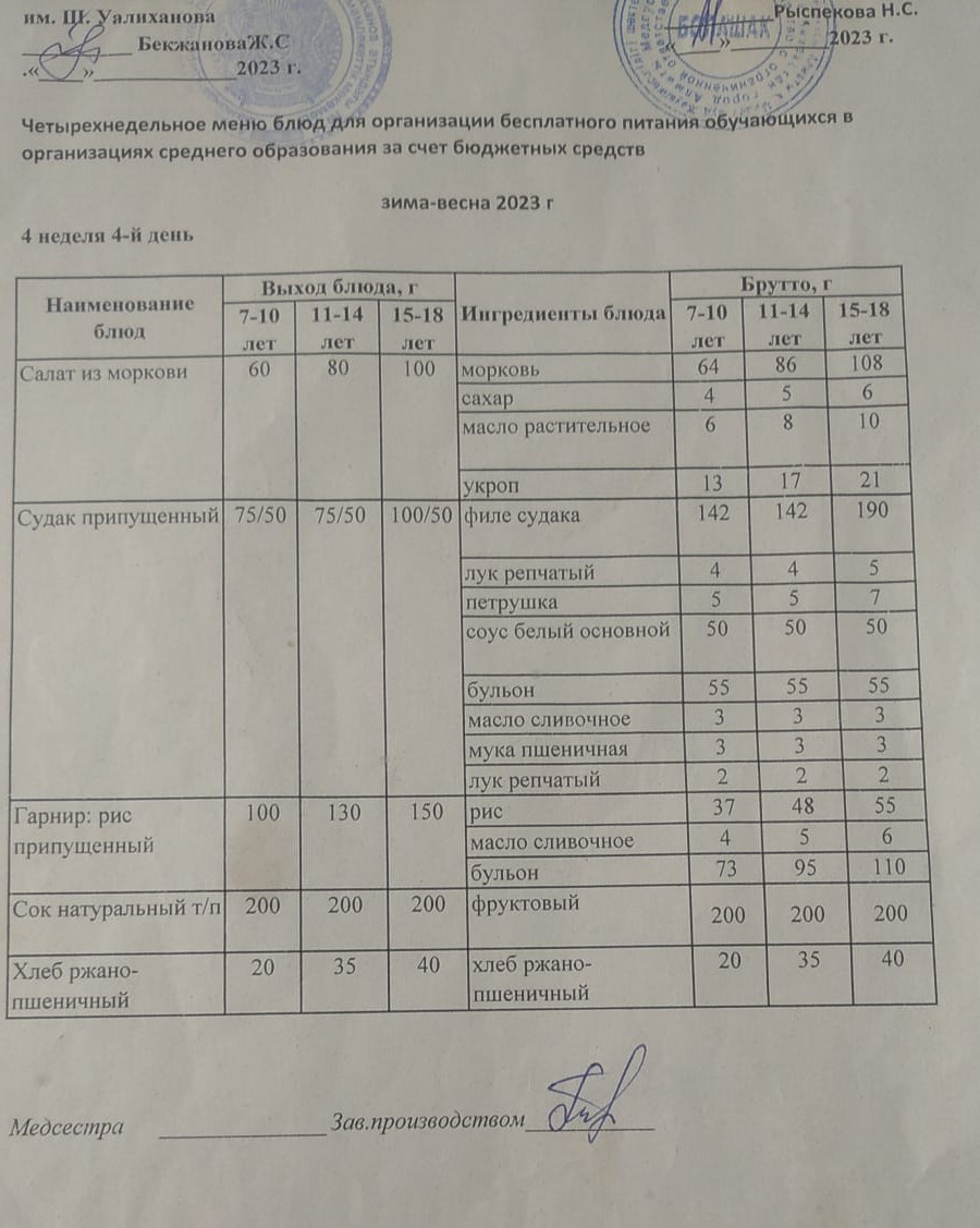 27 сәуір 2023 0 1 2 3 4 5 1-4 сынып және СУСН 5-11 сынып оқушыларына арналған бір мезгілдік ыстық тамақ ас мәзірі Осы беттің QR-коды:QR-код этой страницы: